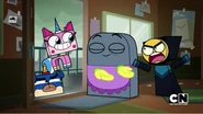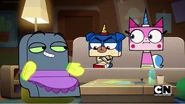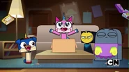 Unikitty and Puppycorn are invited to Master Frown and Brock's apartment for a dinner party. But the two roommates are butting heads, and are anything but on the same page.