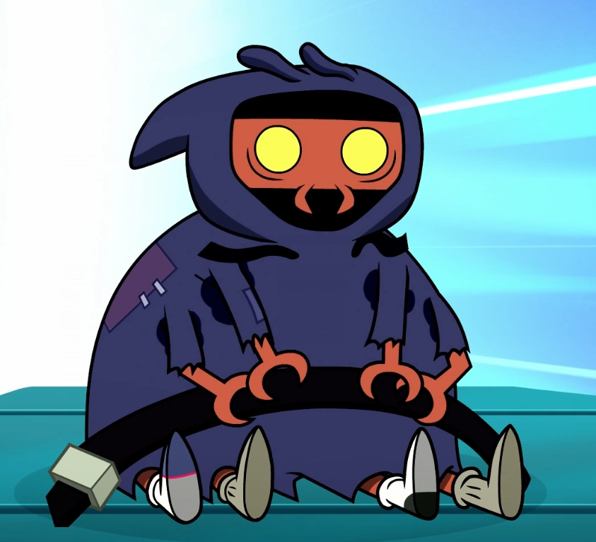 Esteban appears to be a brown, insect-like creature wearing a stained blue hoodie. He has mandibles and yellow compound eyes. He has four arms and four legs, the latter upon he wears four mismatched socks.