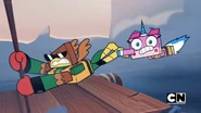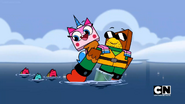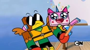 While stranded on a raft together, Hawkodile sees this as an opportunity to show Unikitty that he's prepared for anything, but all of his plans keep falling apart, while Unikitty's approach is somehow working great!